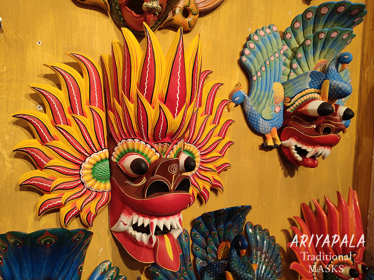 Masks are created for three different types of dancing rituals: Kolam, which tell mocking stories of traditional Sri Lankan colonial life; Sanni, or devil dancing masks, used in a type of exorcism ceremony to heal people of persisting illnesses believed to be inflicted by demons; and Raksha masks, which are used in festivals and processions.